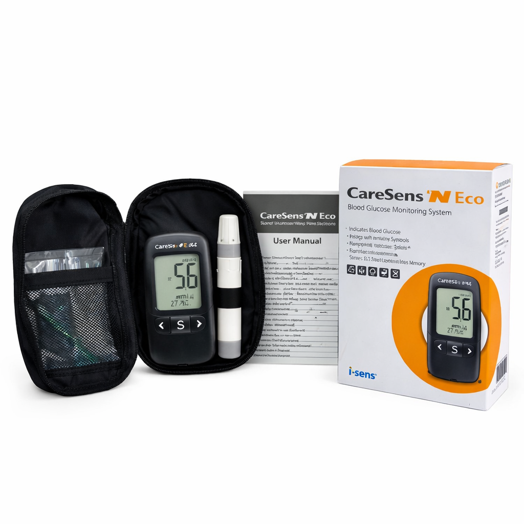 CareSens N Eco Digital Glucometer for Diabetes Care provides accurate and reliable blood sugar testing for daily diabetes management. Designed for home and clinical use, it features an easy-to-read digital display, intuitive symbols for quick result interpretation, and a simple testing process. The device includes memory storage for up to 1,000 test results, allowing users to track glucose trends over time. Compact, portable, and user-friendly, CareSens N Eco is compatible with CareSens test strips and supports consistent, dependable performance for effective blood glucose monitoring as part of a healthy lifestyle.
