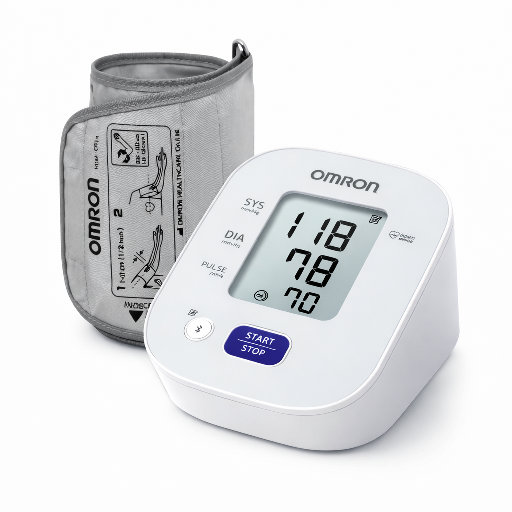 Omron Blood Pressure Monitor provides accurate and reliable blood pressure readings for everyday home monitoring. Designed with advanced sensing technology, it helps users easily track systolic, diastolic, and pulse measurements with confidence. The simple one-touch operation makes it convenient for users of all ages, while the large, clear digital display ensures results are easy to read. Built for regular home use, this monitor supports consistent and dependable performance, helping individuals better understand their blood pressure levels over time. Its comfortable upper arm cuff is designed to provide a secure fit, improving measurement accuracy and user comfort.