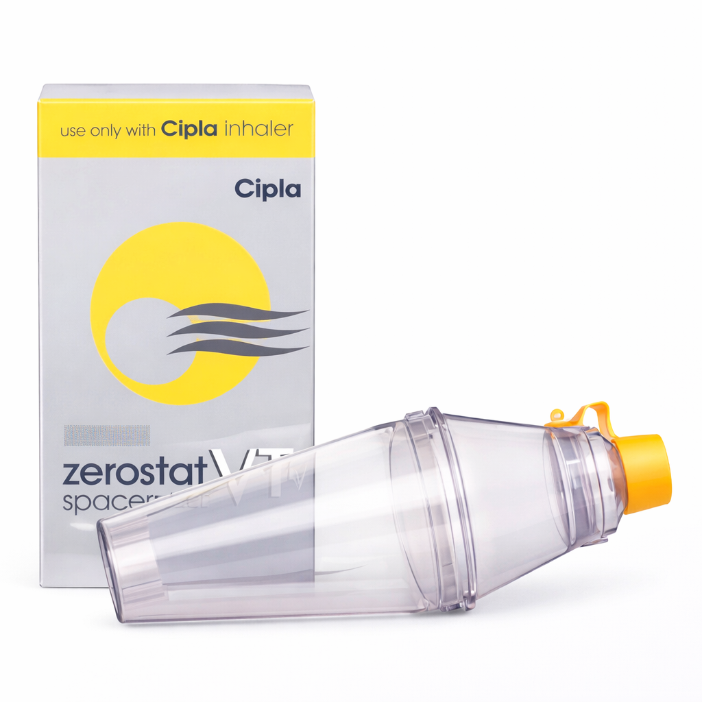 Zerostat VT Spacer Device is an effective and reliable solution designed to improve inhaler medication delivery for asthma and respiratory patients. Engineered to enhance drug deposition in the lungs, this spacer helps reduce medication loss and minimizes common side effects such as throat irritation. Its transparent inhalation chamber allows users to visually monitor inhalation, ensuring correct usage and better treatment outcomes. Compatible with most standard metered dose inhalers, the Zerostat VT Spacer is suitable for both adults and children. The ergonomic mouthpiece and secure locking system provide a comfortable, leak-free fit during use. Lightweight, durable, and easy to clean, it is ideal for everyday home use as well as clinical environments.