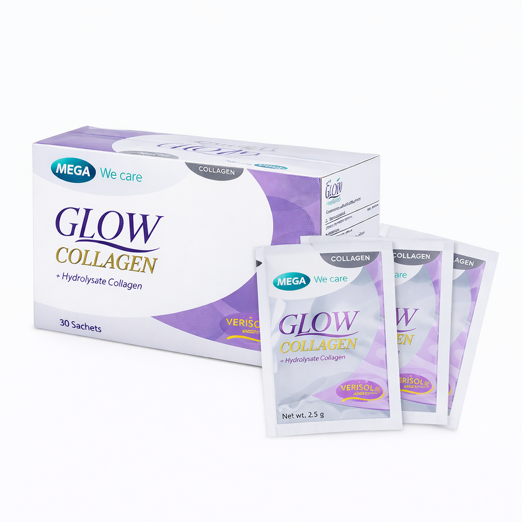 Glow Collagen Sachets by Mega We Care are specially formulated with high-quality hydrolysed collagen to support healthy, youthful-looking skin from within. Enriched with clinically researched collagen peptides, this beauty supplement helps improve skin elasticity, hydration, and firmness while reducing the appearance of fine lines and wrinkles. Regular use supports natural collagen production, promoting a radiant glow and smoother complexion.