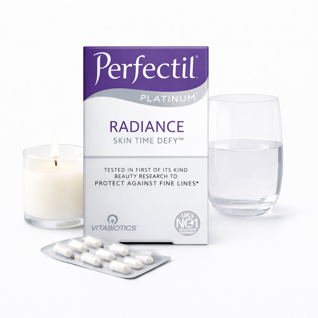 Perfectil Platinum Radiance is a premium beauty supplement specially formulated to support youthful, radiant skin from within. Developed by Vitabiotics, this advanced formula helps protect against fine lines, wrinkles, and premature skin ageing. It combines powerful antioxidants, vitamins, minerals, and marine-derived nutrients that support collagen formation, skin elasticity, and hydration. Designed using first-of-its-kind beauty research, it works at the cellular level to help defend skin against environmental stress, UV damage, and oxidative ageing. Ideal for daily use, it also supports overall skin health while complementing modern skincare routines. Trusted as the UK’s No.1 beauty supplement brand. Regular use helps maintain smoother, brighter, and healthier-looking skin as part of a complete beauty-from-within approach.