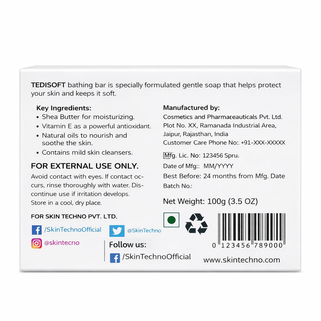 Tedisoft Bathing Bar is a specially formulated gentle pediatric soap designed to protect and nourish sensitive skin. Enriched with skin-friendly ingredients, it helps maintain the natural moisture balance while cleansing effectively without causing dryness or irritation.