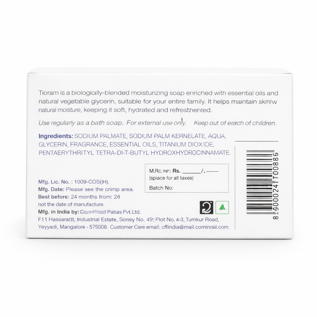 Tioram Active Moisturizing Soap is a gentle, biologically-blended bathing soap enriched with essential oils and natural vegetable glycerin. It helps cleanse the skin while maintaining its natural moisture balance, leaving your skin soft, smooth, and refreshed after every wash.