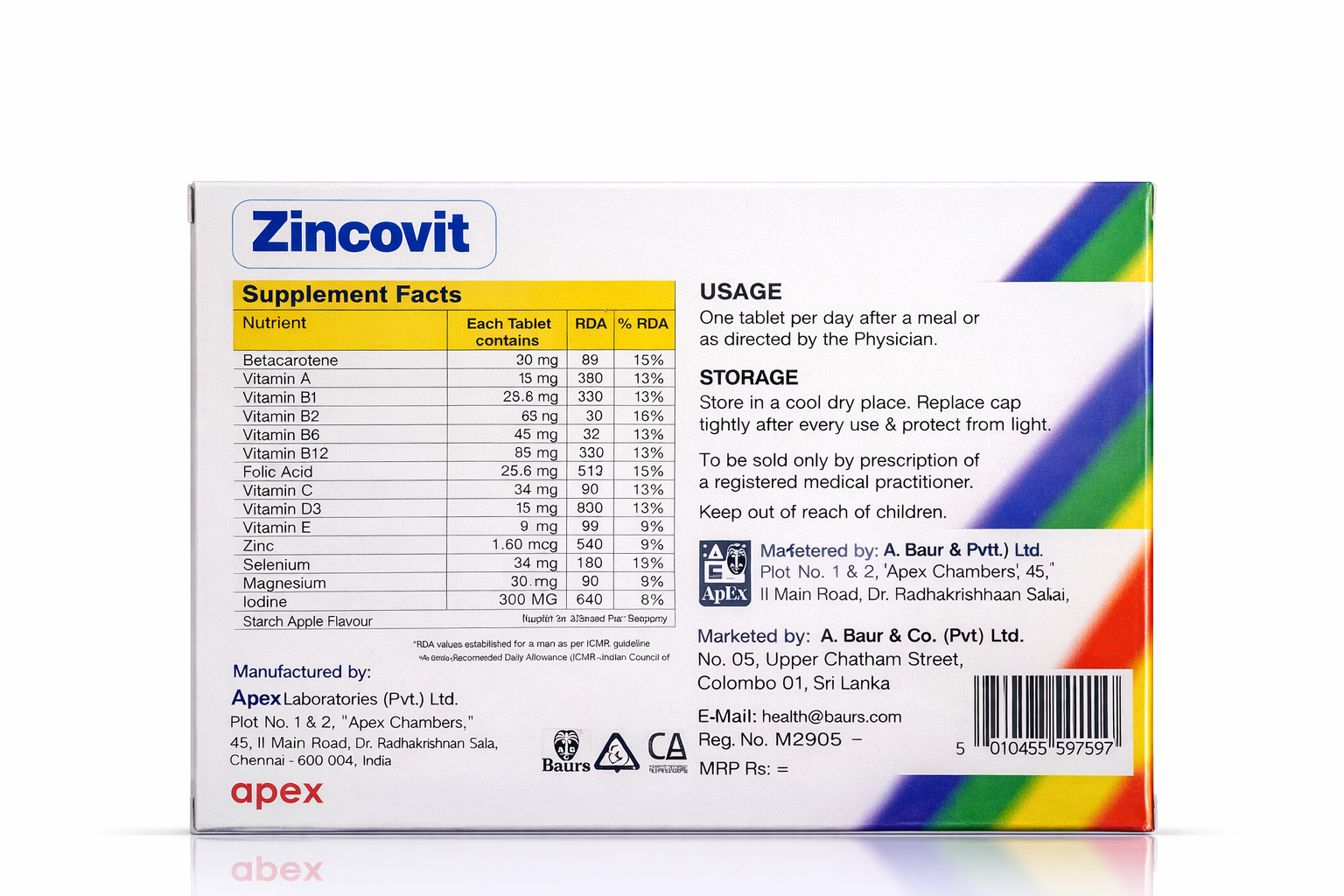 Zincovit is commonly recommended during periods of nutritional deficiency, illness recovery, fatigue, stress, and increased physical or mental demand. The presence of zinc plays a vital role in immune defense, wound healing, and cellular health, while vitamins support energy production and general wellbeing.